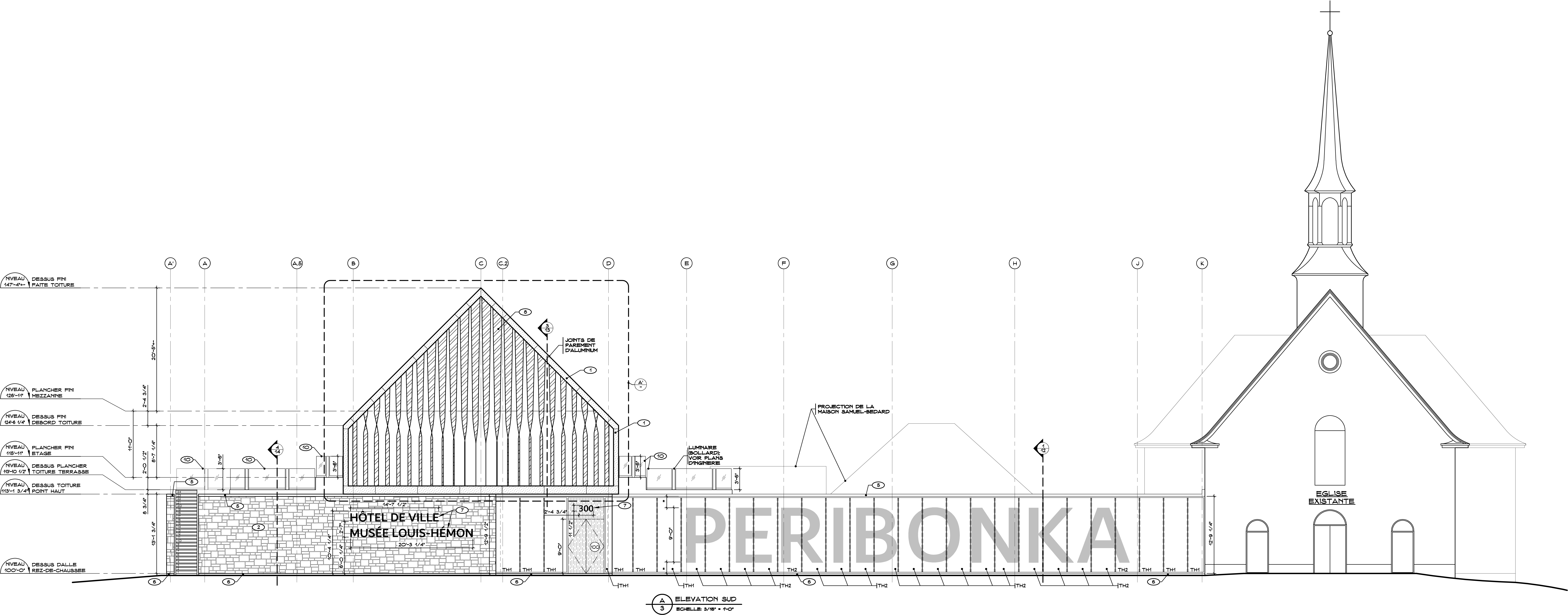 La réalisation d’un projet de construction comporte plusieurs étapes à franchir avant de voir le bâtiment prendre forme. En tant qu’architecte, nous devions nous approprier la culture du projet Espace Péribonka et développer un concept en lien avec le travail accompli. En effet, nous avons pris le flambeau après plusieurs années de travail entamé par le comité de projet.