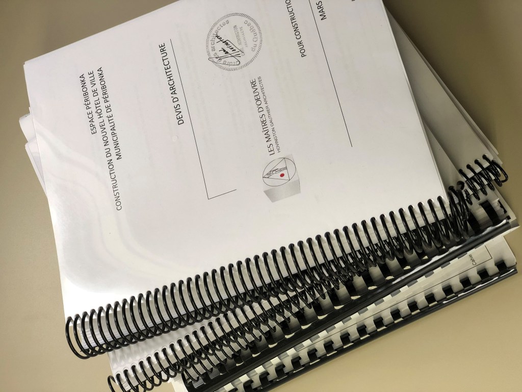Maintenant, nous pouvons enfin constater le résultat du travail des dernières années avec le début de la construction. Avant que le projet ne se concrétise réellement, un travail colossal a été mené de front en arrière-scène par une équipe de professionnels pluridisciplinaires. Voici une liste non-exhaustive des documents essentiels au processus d’élaboration, de conception et de réalisation du projet de construction Espace Péribonka.